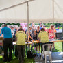 Vagtskiftet ved Marselisborg Slot skærtorsdag kl. 12 tiltrak mange fremmødte, mens politiets indsatsleder undervejs tog sig tid til at besvare spørgsmål fra en nysgerrig dreng.