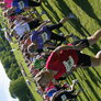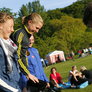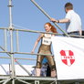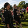 Vagtskiftet ved Marselisborg Slot skærtorsdag kl. 12 tiltrak mange fremmødte, mens politiets indsatsleder undervejs tog sig tid til at besvare spørgsmål fra en nysgerrig dreng.
