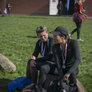 Vagtskiftet ved Marselisborg Slot skærtorsdag kl. 12 tiltrak mange fremmødte, mens politiets indsatsleder undervejs tog sig tid til at besvare spørgsmål fra en nysgerrig dreng.