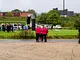 Vagtskiftet ved Marselisborg Slot skærtorsdag kl. 12 tiltrak mange fremmødte, mens politiets indsatsleder undervejs tog sig tid til at besvare spørgsmål fra en nysgerrig dreng.