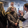 Vagtskiftet ved Marselisborg Slot skærtorsdag kl. 12 tiltrak mange fremmødte, mens politiets indsatsleder undervejs tog sig tid til at besvare spørgsmål fra en nysgerrig dreng.