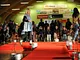 Vagtskiftet ved Marselisborg Slot skærtorsdag kl. 12 tiltrak mange fremmødte, mens politiets indsatsleder undervejs tog sig tid til at besvare spørgsmål fra en nysgerrig dreng.