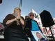 Tusindvis af byens lærere havde idag forsamlet sig foran rådhuset for at demonstrere i forbindelse med byrådsmødet