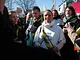 Vagtskiftet ved Marselisborg Slot skærtorsdag kl. 12 tiltrak mange fremmødte, mens politiets indsatsleder undervejs tog sig tid til at besvare spørgsmål fra en nysgerrig dreng.