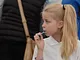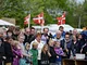 Vagtskiftet ved Marselisborg Slot skærtorsdag kl. 12 tiltrak mange fremmødte, mens politiets indsatsleder undervejs tog sig tid til at besvare spørgsmål fra en nysgerrig dreng.