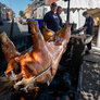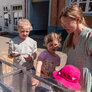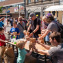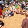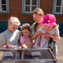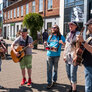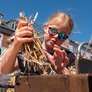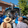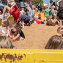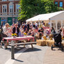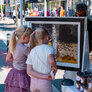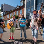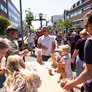 Vagtskiftet ved Marselisborg Slot skærtorsdag kl. 12 tiltrak mange fremmødte, mens politiets indsatsleder undervejs tog sig tid til at besvare spørgsmål fra en nysgerrig dreng.