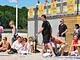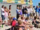 Vagtskiftet ved Marselisborg Slot skærtorsdag kl. 12 tiltrak mange fremmødte, mens politiets indsatsleder undervejs tog sig tid til at besvare spørgsmål fra en nysgerrig dreng.