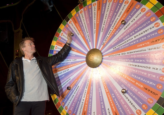 Lars Lilholt optræder i Spejlteltet på Bispetorv med sit sanglykkehjul Festugedirektør Jens Folmer Jepsen introducerede programmet for Spejlteltet i Festugen