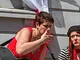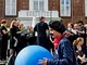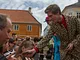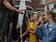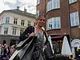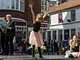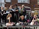 Vagtskiftet ved Marselisborg Slot skærtorsdag kl. 12 tiltrak mange fremmødte, mens politiets indsatsleder undervejs tog sig tid til at besvare spørgsmål fra en nysgerrig dreng.