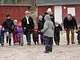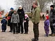 Vagtskiftet ved Marselisborg Slot skærtorsdag kl. 12 tiltrak mange fremmødte, mens politiets indsatsleder undervejs tog sig tid til at besvare spørgsmål fra en nysgerrig dreng.