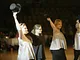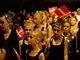 Vagtskiftet ved Marselisborg Slot skærtorsdag kl. 12 tiltrak mange fremmødte, mens politiets indsatsleder undervejs tog sig tid til at besvare spørgsmål fra en nysgerrig dreng.