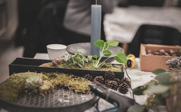 Der blev skabt smukke juledekorationer på Lystrup bibliotek, der i samarbejde med Lystrup blomster by Nordiq House holdt aftenkursus for at inspirere til at lave levende billeder eller dekorationer i moss og andre planter