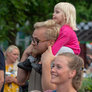Vagtskiftet ved Marselisborg Slot skærtorsdag kl. 12 tiltrak mange fremmødte, mens politiets indsatsleder undervejs tog sig tid til at besvare spørgsmål fra en nysgerrig dreng.