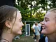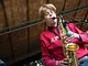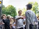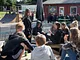 Vagtskiftet ved Marselisborg Slot skærtorsdag kl. 12 tiltrak mange fremmødte, mens politiets indsatsleder undervejs tog sig tid til at besvare spørgsmål fra en nysgerrig dreng.