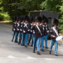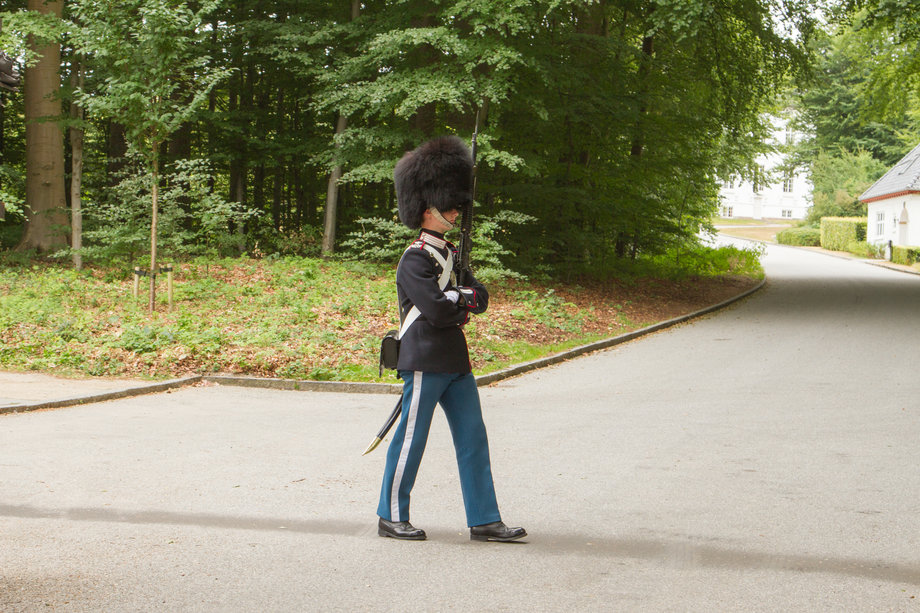 Dronning Margrethe holder sommerferie i øjeblikket på Marselisborg slot. Derfor er livgarden aktiv foran slottet.