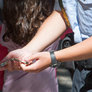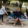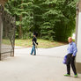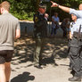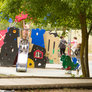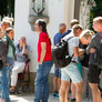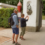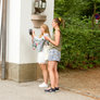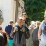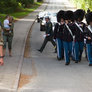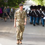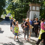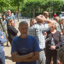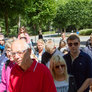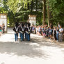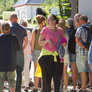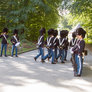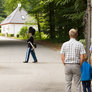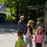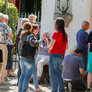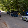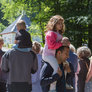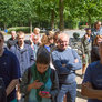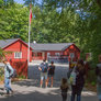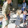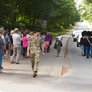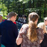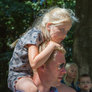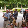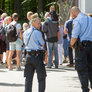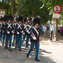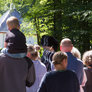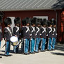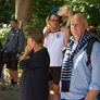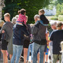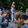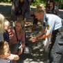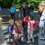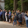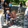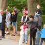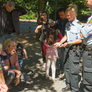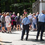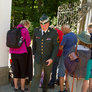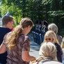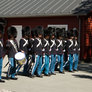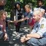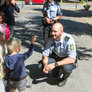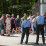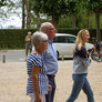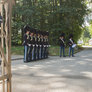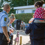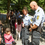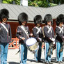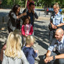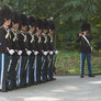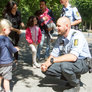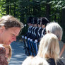 Kl 12:00 er der vagtskifte. Det trækker både en del aarhusianere. Ordensmagten var også tilstede og gav sig tid til at snakke med de fremmødte børn om deres arbejde med at passe på dronningen