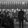 Vagtskiftet ved Marselisborg Slot skærtorsdag kl. 12 tiltrak mange fremmødte, mens politiets indsatsleder undervejs tog sig tid til at besvare spørgsmål fra en nysgerrig dreng.