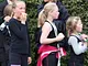 Vagtskiftet ved Marselisborg Slot skærtorsdag kl. 12 tiltrak mange fremmødte, mens politiets indsatsleder undervejs tog sig tid til at besvare spørgsmål fra en nysgerrig dreng.
