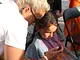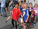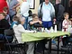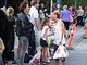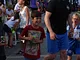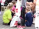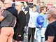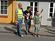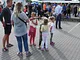 Vagtskiftet ved Marselisborg Slot skærtorsdag kl. 12 tiltrak mange fremmødte, mens politiets indsatsleder undervejs tog sig tid til at besvare spørgsmål fra en nysgerrig dreng.