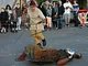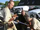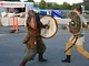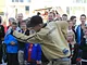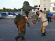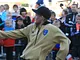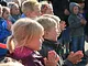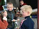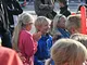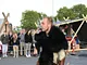Vagtskiftet ved Marselisborg Slot skærtorsdag kl. 12 tiltrak mange fremmødte, mens politiets indsatsleder undervejs tog sig tid til at besvare spørgsmål fra en nysgerrig dreng.
