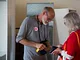 Vagtskiftet ved Marselisborg Slot skærtorsdag kl. 12 tiltrak mange fremmødte, mens politiets indsatsleder undervejs tog sig tid til at besvare spørgsmål fra en nysgerrig dreng.
