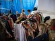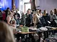 Vagtskiftet ved Marselisborg Slot skærtorsdag kl. 12 tiltrak mange fremmødte, mens politiets indsatsleder undervejs tog sig tid til at besvare spørgsmål fra en nysgerrig dreng.
