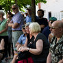 Vagtskiftet ved Marselisborg Slot skærtorsdag kl. 12 tiltrak mange fremmødte, mens politiets indsatsleder undervejs tog sig tid til at besvare spørgsmål fra en nysgerrig dreng.