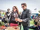 Vagtskiftet ved Marselisborg Slot skærtorsdag kl. 12 tiltrak mange fremmødte, mens politiets indsatsleder undervejs tog sig tid til at besvare spørgsmål fra en nysgerrig dreng.