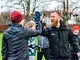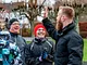 Vagtskiftet ved Marselisborg Slot skærtorsdag kl. 12 tiltrak mange fremmødte, mens politiets indsatsleder undervejs tog sig tid til at besvare spørgsmål fra en nysgerrig dreng.