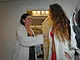 Vagtskiftet ved Marselisborg Slot skærtorsdag kl. 12 tiltrak mange fremmødte, mens politiets indsatsleder undervejs tog sig tid til at besvare spørgsmål fra en nysgerrig dreng.