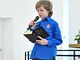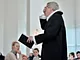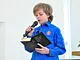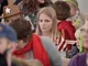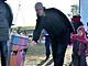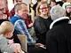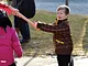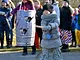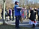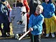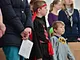 Vagtskiftet ved Marselisborg Slot skærtorsdag kl. 12 tiltrak mange fremmødte, mens politiets indsatsleder undervejs tog sig tid til at besvare spørgsmål fra en nysgerrig dreng.