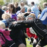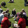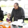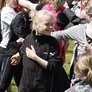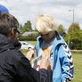 Vagtskiftet ved Marselisborg Slot skærtorsdag kl. 12 tiltrak mange fremmødte, mens politiets indsatsleder undervejs tog sig tid til at besvare spørgsmål fra en nysgerrig dreng.