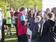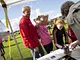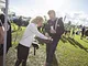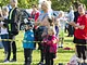 Vagtskiftet ved Marselisborg Slot skærtorsdag kl. 12 tiltrak mange fremmødte, mens politiets indsatsleder undervejs tog sig tid til at besvare spørgsmål fra en nysgerrig dreng.
