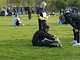 Vagtskiftet ved Marselisborg Slot skærtorsdag kl. 12 tiltrak mange fremmødte, mens politiets indsatsleder undervejs tog sig tid til at besvare spørgsmål fra en nysgerrig dreng.
