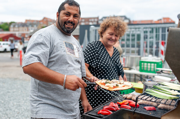 Jægergårdsgade/Sydhavnen var rammen om Skraldecafe'ens udekøkken, som bød på nærvær og godt humør. Mens der blev lavet mad til og med de hjemløse og udsatte i Aarhus. Spotted's udsendte fotograf kan bekræfte at det var rigtig spændende og god mad ;-)
