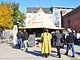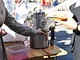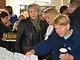 Vagtskiftet ved Marselisborg Slot skærtorsdag kl. 12 tiltrak mange fremmødte, mens politiets indsatsleder undervejs tog sig tid til at besvare spørgsmål fra en nysgerrig dreng.