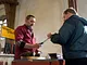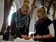 Vagtskiftet ved Marselisborg Slot skærtorsdag kl. 12 tiltrak mange fremmødte, mens politiets indsatsleder undervejs tog sig tid til at besvare spørgsmål fra en nysgerrig dreng.