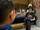 Vagtskiftet ved Marselisborg Slot skærtorsdag kl. 12 tiltrak mange fremmødte, mens politiets indsatsleder undervejs tog sig tid til at besvare spørgsmål fra en nysgerrig dreng.