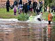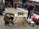 Vagtskiftet ved Marselisborg Slot skærtorsdag kl. 12 tiltrak mange fremmødte, mens politiets indsatsleder undervejs tog sig tid til at besvare spørgsmål fra en nysgerrig dreng.