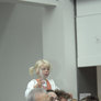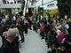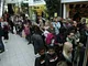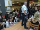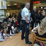 Vagtskiftet ved Marselisborg Slot skærtorsdag kl. 12 tiltrak mange fremmødte, mens politiets indsatsleder undervejs tog sig tid til at besvare spørgsmål fra en nysgerrig dreng.