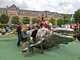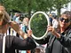 Vagtskiftet ved Marselisborg Slot skærtorsdag kl. 12 tiltrak mange fremmødte, mens politiets indsatsleder undervejs tog sig tid til at besvare spørgsmål fra en nysgerrig dreng.
