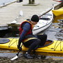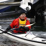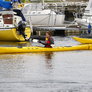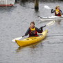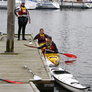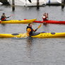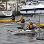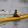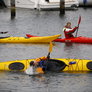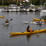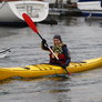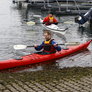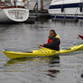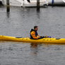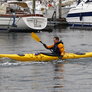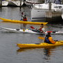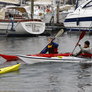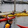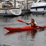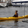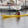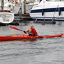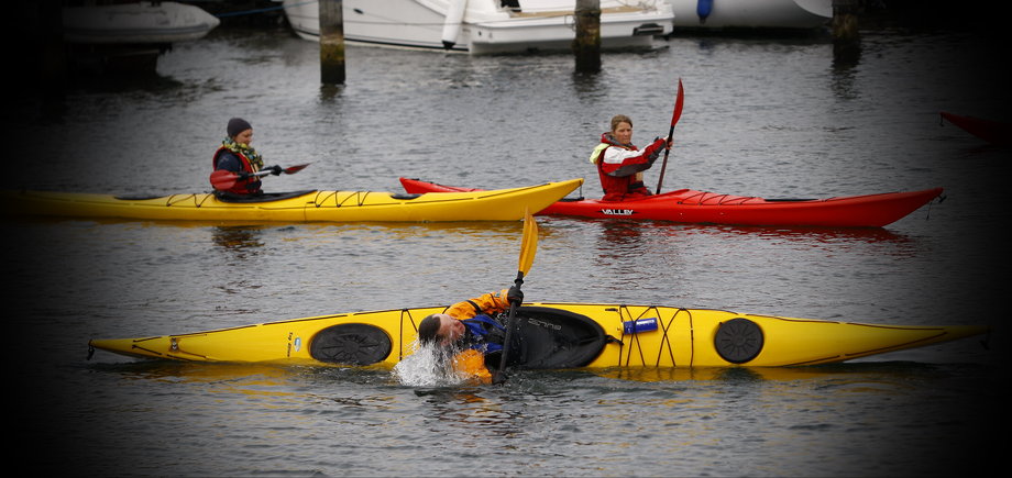 Kalenderen siger forår; men varmen lader vente på sig. Selv Marselisborg Havn som plejer at syde af mennesker, var stille i dag. Undtagelsen var en heftig aktivitet i at lære at sejle i kajak.