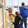 Vagtskiftet ved Marselisborg Slot skærtorsdag kl. 12 tiltrak mange fremmødte, mens politiets indsatsleder undervejs tog sig tid til at besvare spørgsmål fra en nysgerrig dreng.