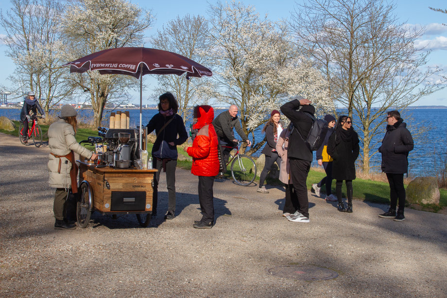 Mange århusianerne tog turen i skoven og Dyrehaven i det gode vejr. Pølsevognen var godt besøgt og ved de brændte mandler var der lavet afstandsmærker så folk ikke stod for tæt. Det det bliver taget mere alvorligt nu, selvom det stadig klumper sammen til tider.