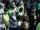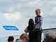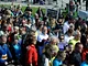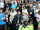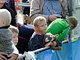 Vagtskiftet ved Marselisborg Slot skærtorsdag kl. 12 tiltrak mange fremmødte, mens politiets indsatsleder undervejs tog sig tid til at besvare spørgsmål fra en nysgerrig dreng.