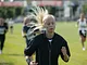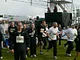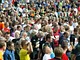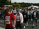 Vagtskiftet ved Marselisborg Slot skærtorsdag kl. 12 tiltrak mange fremmødte, mens politiets indsatsleder undervejs tog sig tid til at besvare spørgsmål fra en nysgerrig dreng.