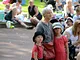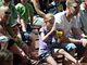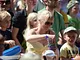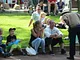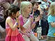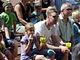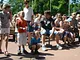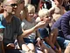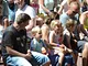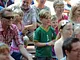 Vagtskiftet ved Marselisborg Slot skærtorsdag kl. 12 tiltrak mange fremmødte, mens politiets indsatsleder undervejs tog sig tid til at besvare spørgsmål fra en nysgerrig dreng.