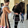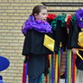 Vagtskiftet ved Marselisborg Slot skærtorsdag kl. 12 tiltrak mange fremmødte, mens politiets indsatsleder undervejs tog sig tid til at besvare spørgsmål fra en nysgerrig dreng.