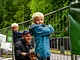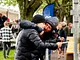 Vagtskiftet ved Marselisborg Slot skærtorsdag kl. 12 tiltrak mange fremmødte, mens politiets indsatsleder undervejs tog sig tid til at besvare spørgsmål fra en nysgerrig dreng.
