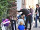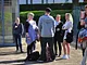 Vagtskiftet ved Marselisborg Slot skærtorsdag kl. 12 tiltrak mange fremmødte, mens politiets indsatsleder undervejs tog sig tid til at besvare spørgsmål fra en nysgerrig dreng.